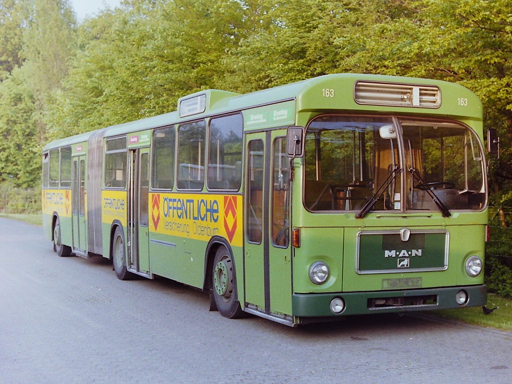 1980 brachte MAN den Nachfolger, den SG 240 H auf den Markt. Das "H" stand in diesem Fall für Heckmotor. Der Antrieb erfolgte anders als bei Mercedes nach wie vor auf die mittlere Achse. Der SG 220 war mit 16,48 m auf 53 Sitz- und 106 Stehplätze ausgelegt. Der o.a. Wagen 163 blieb ein Einzelstück in Oldenburg. Er war aber der erste Gelenkbus mit Automatikgetriebe.